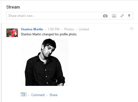 Now my Stream is letting me know that Stanton Martin changed his profile picture! It’s good to see that this notification takes up most of the screen. So much better than Facebook!