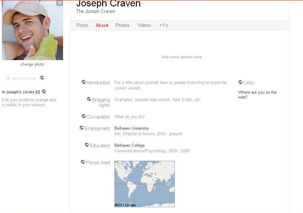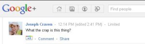 Since I knew nothing about it, getting into Google+ was exciting. The natural first thing to do was set up my profile. So I put up a profile picture….went ahead and addded some employment info….and….educational….info? Wait, I feel like I’ve done all this before.