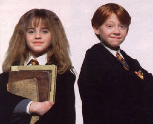 Harry Potter follows the story of Harry and his friends, Ron Weasley, who is never any help at all, and Hermione Granger, whose name is pronounced Herminey. From here on out, it will be spelled that way.